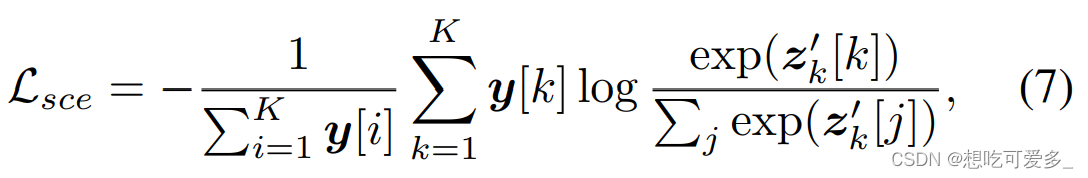 式子预测向量进行softmax操作(SCE = softmax + CE,softmax可以理解为是网络的一部分,也可以当作损失的一部分)。这里使用的标注文件是 one-hot,也就是标注向量中只有一个1,其余全是0,因为在ReCAM阶段我们把多分类任务转换成了多个单分类任务。所以SCE训练时具有 class-exclusive 的特性。