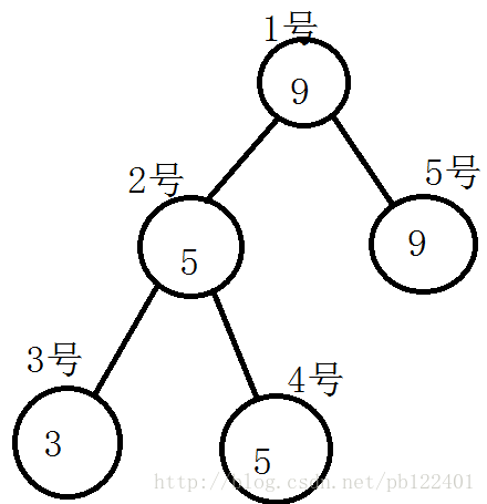 1、从根节点开始,左儿子2号节点的值5>=5,向左递归