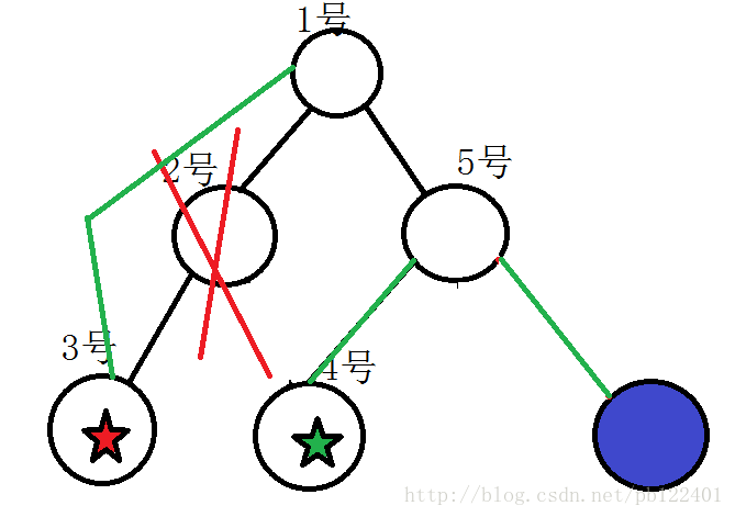 其中五角星代表下面还有深度巨大的子树,颜色只是为了区分