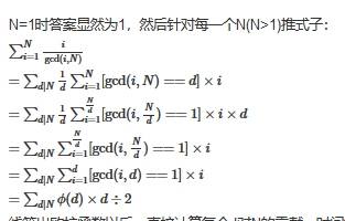 orz,数学差的我表示服气,公式推导到这后就可以直接枚举每个欧拉函数的贡献了。