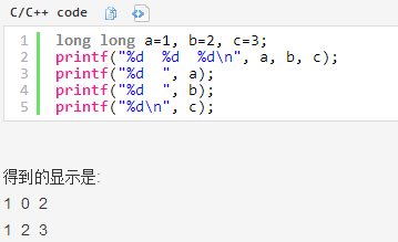 - printf("a[2][1] == %dn", v );