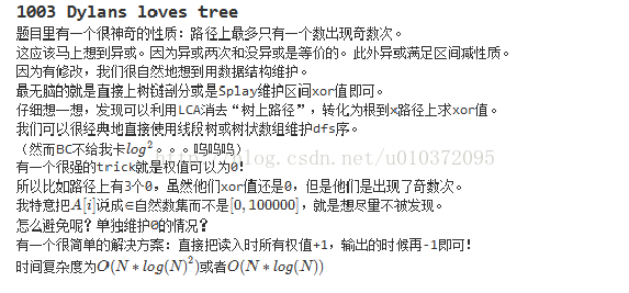 路径上的每一种点权,是否都出现偶数次? 保证每次询问的路径上最多只有一种点权的出现次数是奇数次。 1≤N,Q≤100000