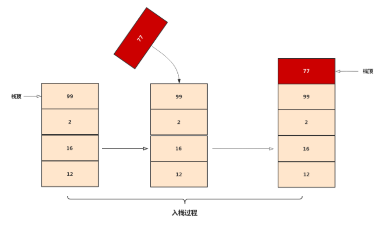 栈是一种特殊的线性表,仅能在线性表的一端操作,栈顶允许操作,栈底不允许操作。 栈的特点是:先进后出,或者说是后进先出,从栈顶放入元素的操作叫入栈,取出元素叫出栈。