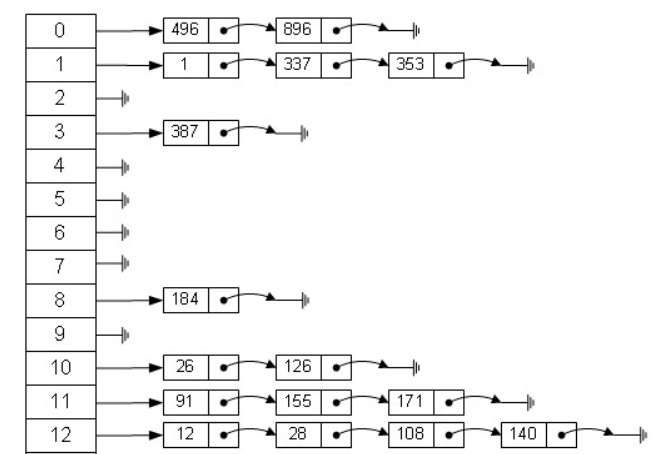 从图中可以看出,左边很明显是个数组,数组的每个成员包括一个指针,指向一个链表的头,这个链表可能为空,也可能有很多元素。