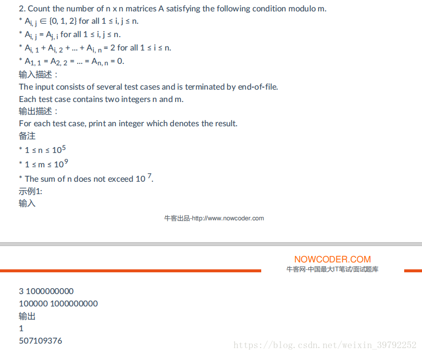 以上就是傲娇太阳最近收集整理的关于牛客网暑期ACM多校训练营(第一场)B Symmetric Matrix [数学] B Symmetric Matrix的全部内容,更多相关牛客网暑期ACM多校训练营(第一场)B内容请搜索靠谱客的其他文章。