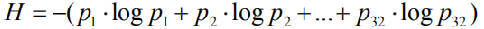 p1,p2,...,p32分别是概率,香农把它称作信息熵,单位为比特;