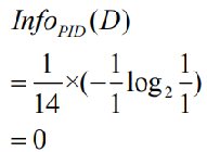 H(D) = -0.5 * log20.5 - 0.5 * log20.5 = 1