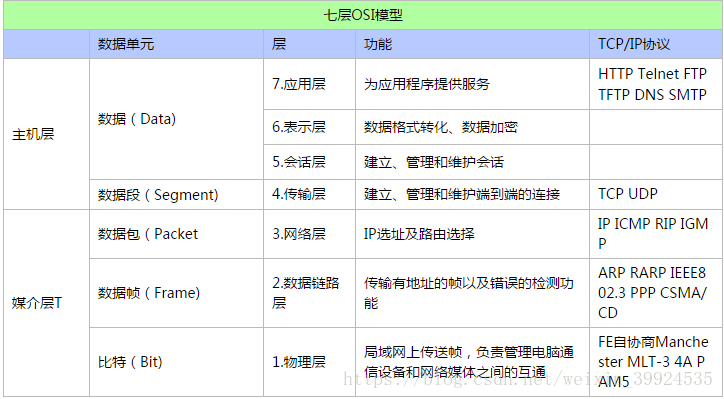 OSI 七层模型:
