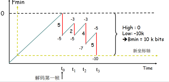 - HRD的例子:帧率30fps,序列编码比特bi={5k,2k,4k,5k},传输码率R=60kbps è2kb/frame