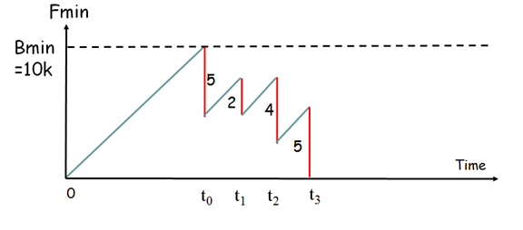 HRD算法:给定压缩码流{b 0, b 1, …, b N-1}和码率R,发现最小的缓冲区大小B min和最小的初始缓冲区的充满度F min