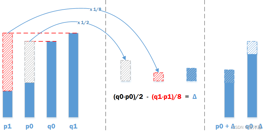 - 先要得到差值Δ,差值的计算方式:Δ = ( (q0-p0)> 3