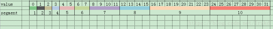 x,y的取值范围为0~31, 这个区间被分割为10段,如下图所示