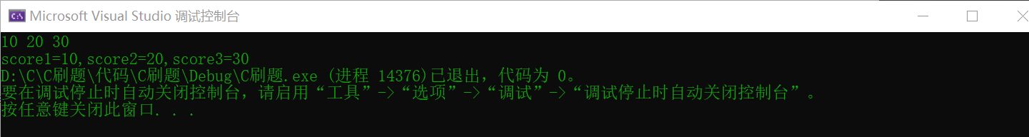 printf("score1=%d,score2=%d,score3=%dn", score[0], score[1], score[2]);