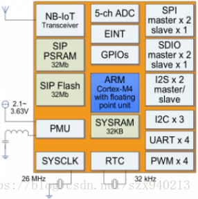 功能:系统:RTOS 尺寸:16mm X 18mm 集成:ARM Cortex-M 微控制器(MCU)+伪静态随机存储器(PSRAM)+闪存与电源管理单元(PMU) 频段:支持 全球网络全频段的450MHz-2.1GHz 接口:安全数字输入输出模块(SDIO)、通用异步收发传输器(UART)、I2C 传输协议、I2S、序列外围接口(SPI)及脉冲宽度调制(PWM)
