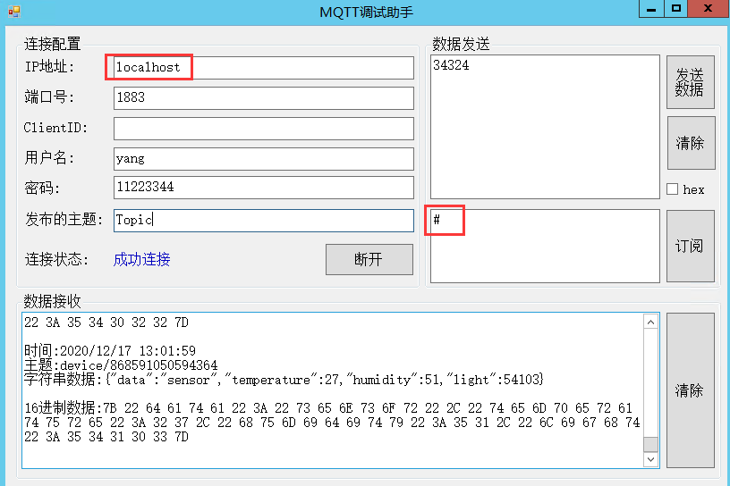 点击发送的时候实际上该消息就发给了MQTT服务器