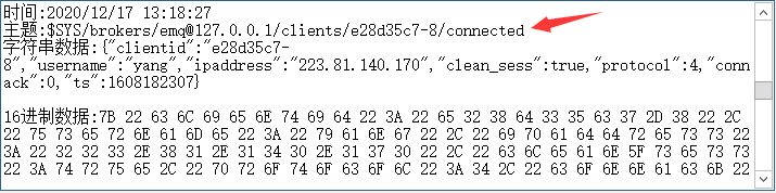 当然咱假设,设备1连接上TCP服务器,然后,告诉TCP服务器我订阅的主题是wwww