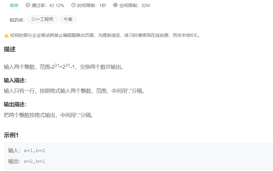 以下题目来源于牛客网编程初学者练习,可以点击题目进行跳转。