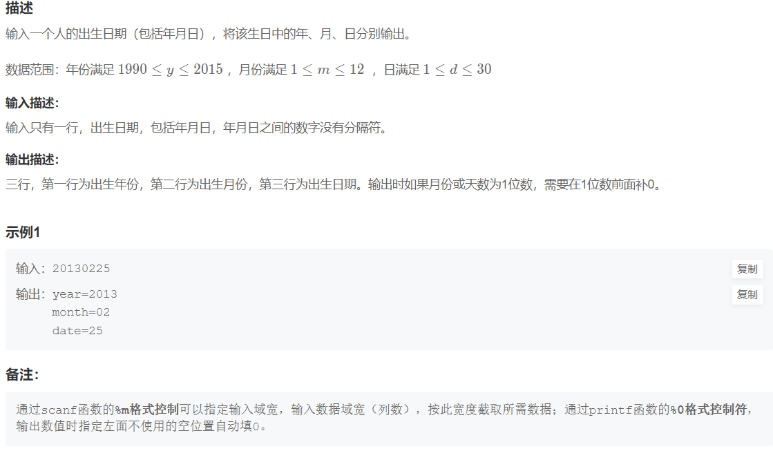 但重点在于输出格式,在输出month和date时,如果只有一位数,前面的空位置需要用0来填空。