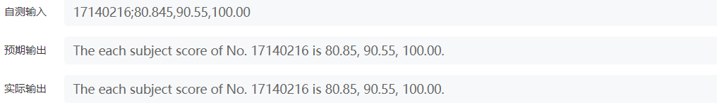 最后就是要注意输出样例中的一些空格,例如,【score of No. 17140216】标红的地方就是有一个个空格。