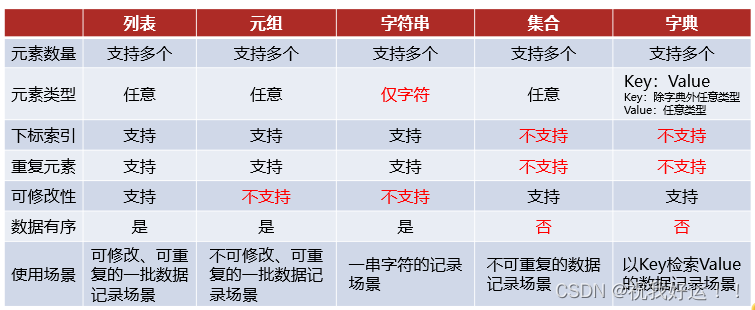 数据容器根据特点不同,如: