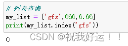 功能:查找指定元素在列表的下标,如果找不到,报错ValueError