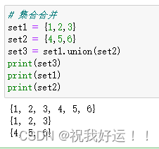 语法:集合1.union(集合2)