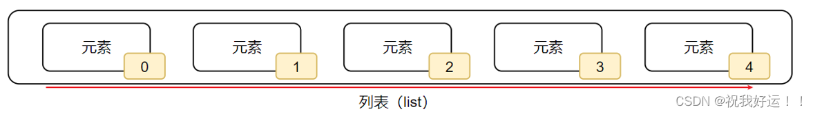 如图,列表中的每一个元素都有其位置上的下标索引,从前向后,从0开始依次递增。