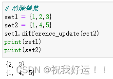 语法:集合1.difference_update(集合2)