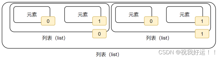 - 列表内每一个元素之间用“,”逗号隔开