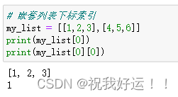 如果列表是嵌套列表,同样可以进行下标索引: