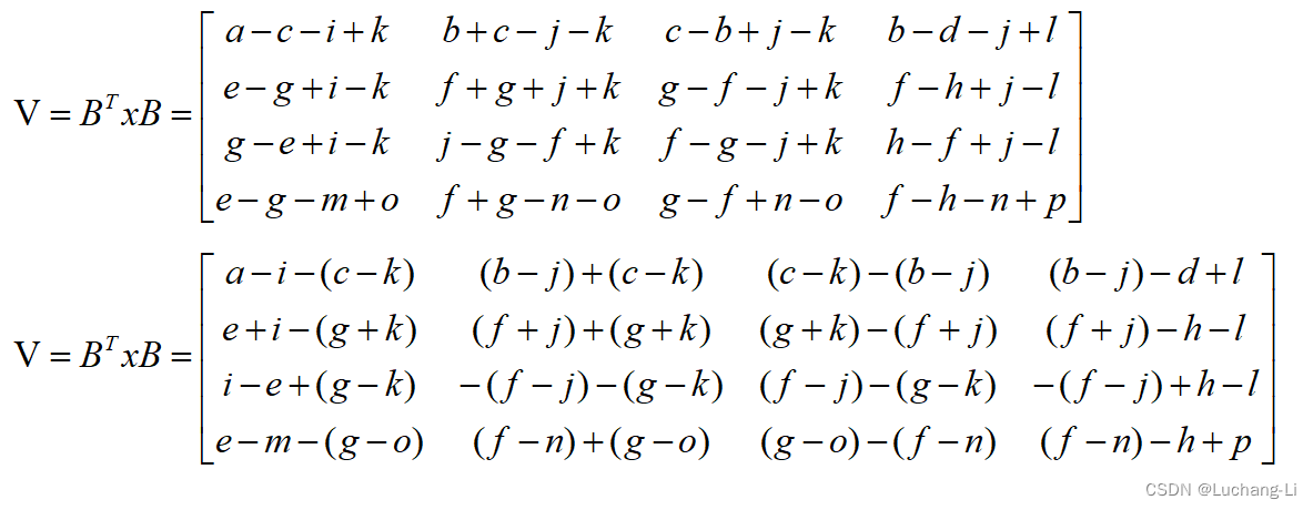 输入变换计算过程,假设输入x的4x4空间维内容标记为a-p(可以借助Matlab符号计算来得到转换结果矩阵与x的计算关系):
