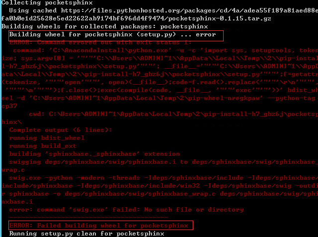 ERROR: Failed building wheel for pocketsphinx