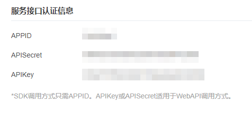 首先需要到科大讯飞官网开发者控制台创建一个应用,创建成功后获得服务接口认证信息,我们只需用到其中的AppID。