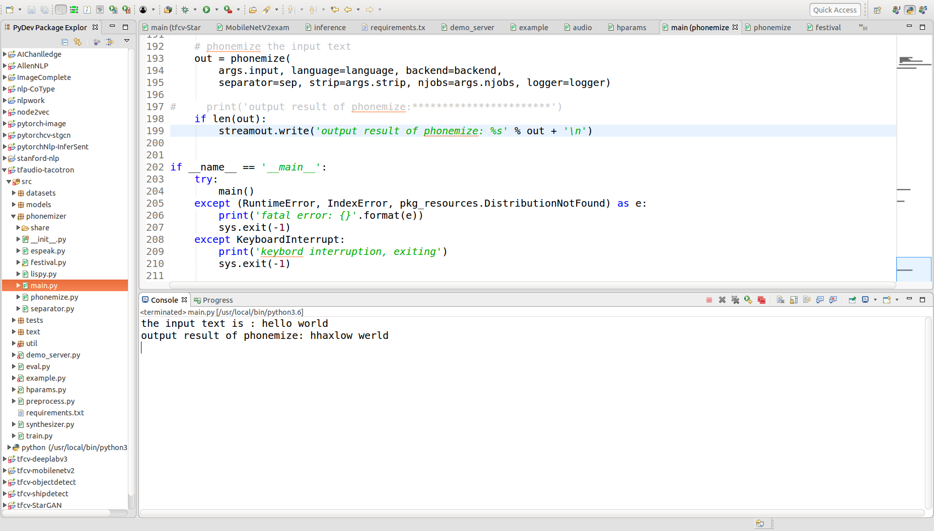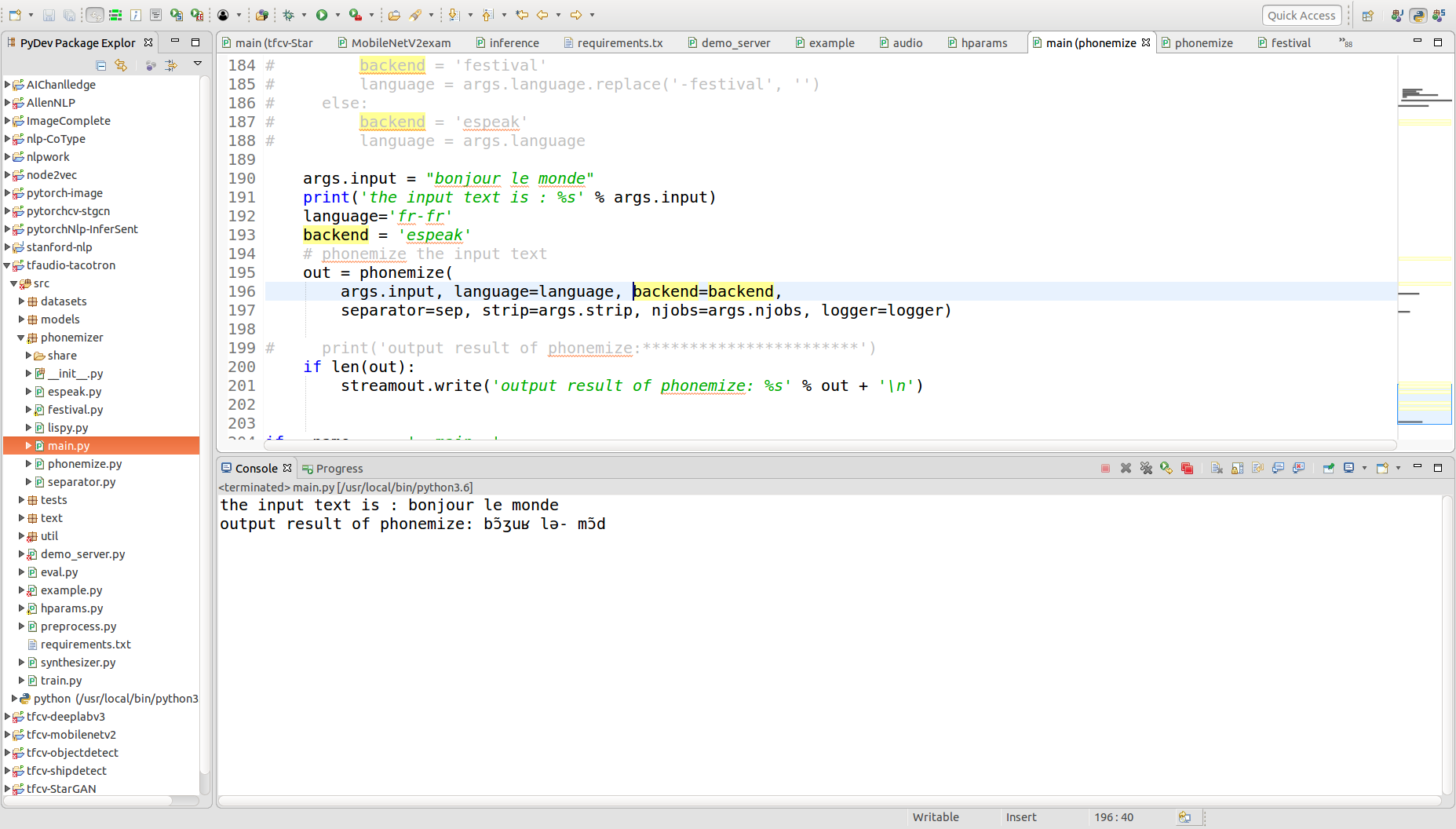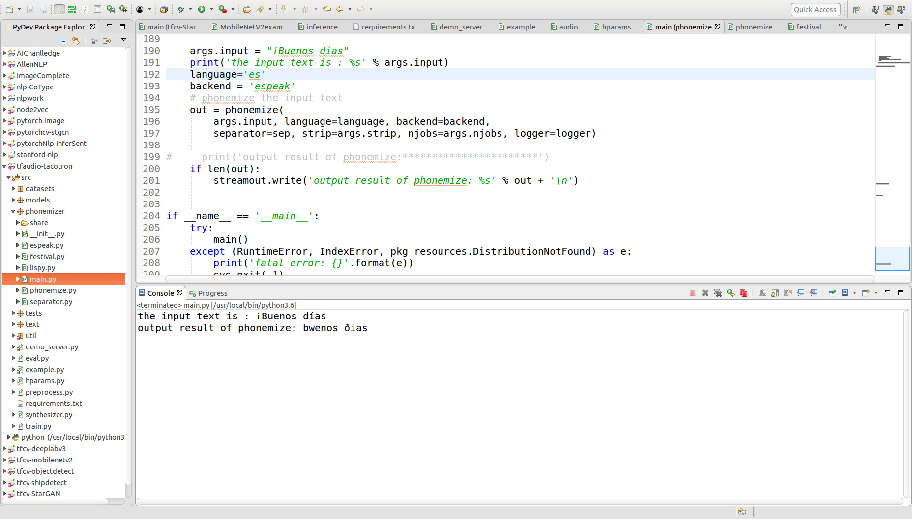 (2) 进行源码的编译和查看,发现其调用的是festival and espeak/espeak-ng 两个系统的东西,即相当于提供了一个接口调用的东西。上述两种音素转换工具的区别如下:Festival provides US English phonemization with syllable tokenization, espeak endows multiple languages but without syllable boundaries.,可见espeak支持更多的语言。