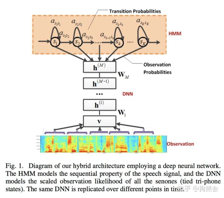 最早用于声学建模的神经网络就是最普通的深度神经网络(DNN),GMM 等传统的声学模型存在音频信号表征的低效问题,但 DNN 可以在一定程度上解决这种低效表征。但在实际建模时,由于音频信号是时序连续信号,DNN 则是需要固定大小的输入,所以早期使用 DNN 来搭建声学模型时需要一种能够处理语音信号长度变化的方法。一种将 HMM 模型与 DNN 模型结合起来的 DNN-HMM 混合系统颇具有效性。