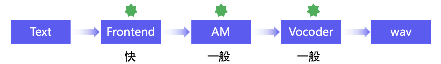- 文本前端:采用基于规则的中文文本前端系统,对文本正则、多音字、变调等中文文本场景进行了优化。