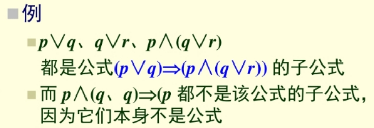 设A为命题公式,B为A中的一个连续的符号串,且B为命题公式,则称B为A的子公式