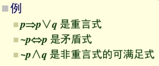- 重言式一定是可满足式,但反之不真