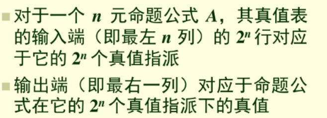一个命题公式在每种真值指派(每种命题变项取值的组合)上的值可以直观地用真值表来计算和表示