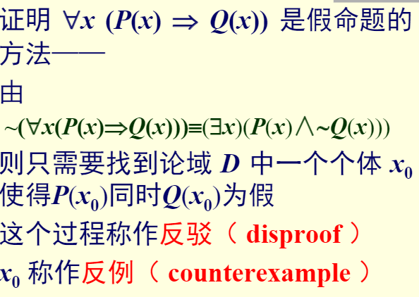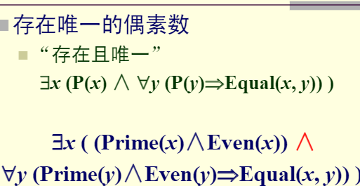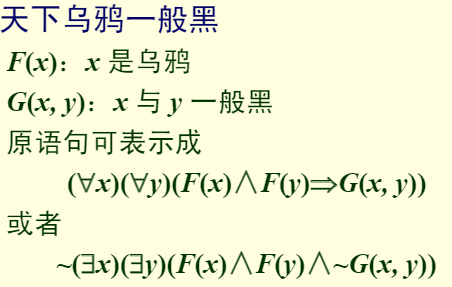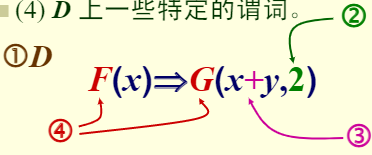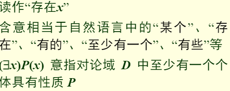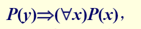 ■其中y是论域中任一个体。意指如果任一个个体y∈D都具有性质P,那么D中所有个体x都具有性质P