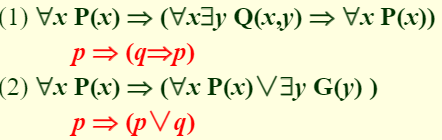 - 任意两个重言式的析取或合取仍然是重言式