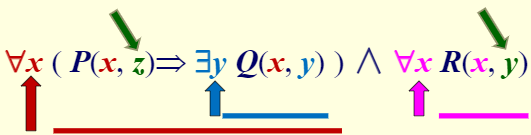 量词的辖域都延伸到整个公式的末端,