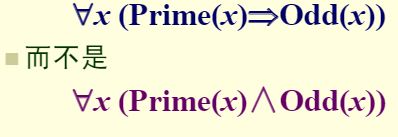 ■一般地讲,"所有的A是B”、“是A的都是B”、“一切A都是B的。”这类语句的形式描述只能使用“→”而不能使用“∧”