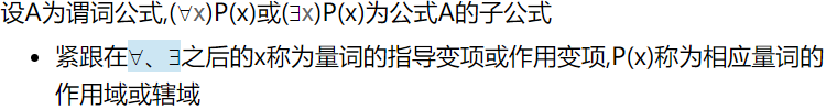 在辖域中x的一切出现均称为约束出现,受指导变项所约束