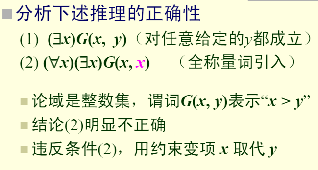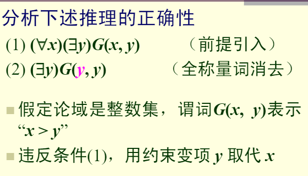 第一式中,取代x的y应为任意的不在P(x中约束出现的个体变项