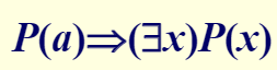 其中a是论域中一个体常项。意指如果有个体常项a具有性质P,那么($x)P(x)必真。