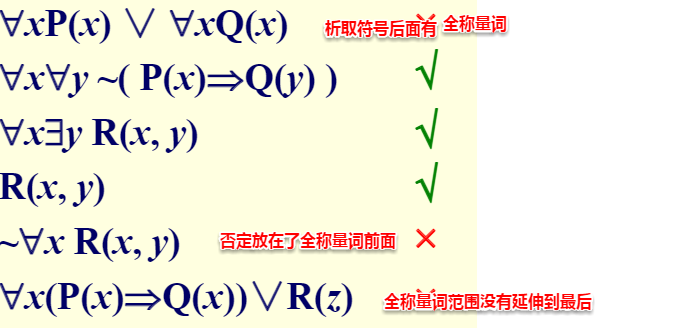 任一谓词公式都存在与之等值的前束范式,但其前束范式并不唯一
