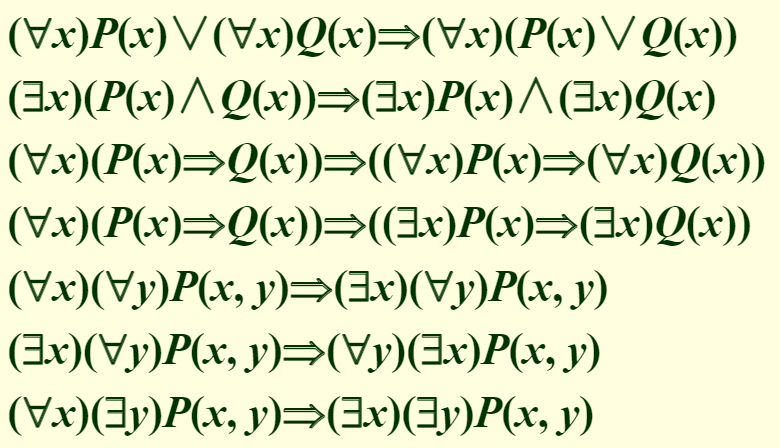 设A(x),B(x)是含x自由出现的谓词公式,则有: