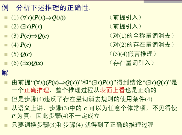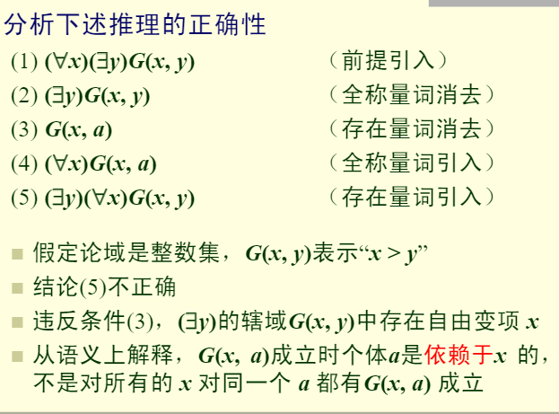 换言之,在含有多个量词的谓词推理中,使用消去规则应该按照从左到右的顺序,而引入规则的使用应该按照从右到左的顺序。