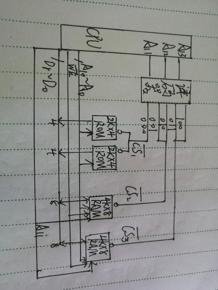 补充:1.容量为10KB,10x2的10次方B,地址线为11根,字长为8位,数据线为8根,外加3-8译码器进行片选,加3根。地址线为3+11=14根